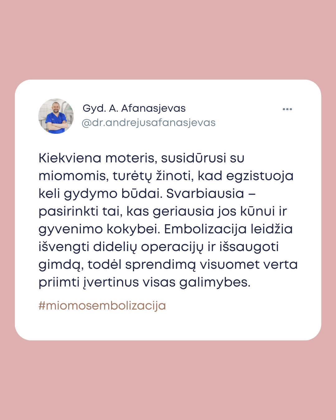 – dalis pacienčių net nežino apie gimdos miomų embolizaciją.